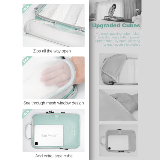 You can choose from different sets that come with different sizes of cubes, allowing you to pack everything from your clothing and toiletries to your electronics and accessories.