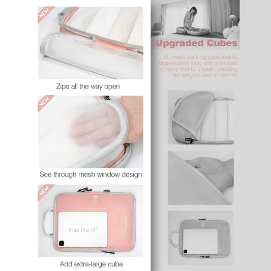 Compression Packing Cubes with Shoe Bag & Toiletry Bag - Rose Quartz, 8 Pack