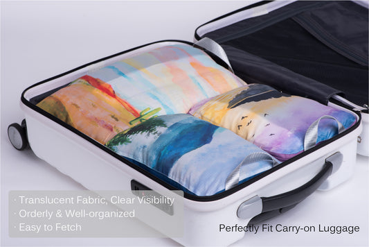 Packing Cube Set of 3 for Travel, Compression Bags Organizer for Luggage / Backpack, Painting