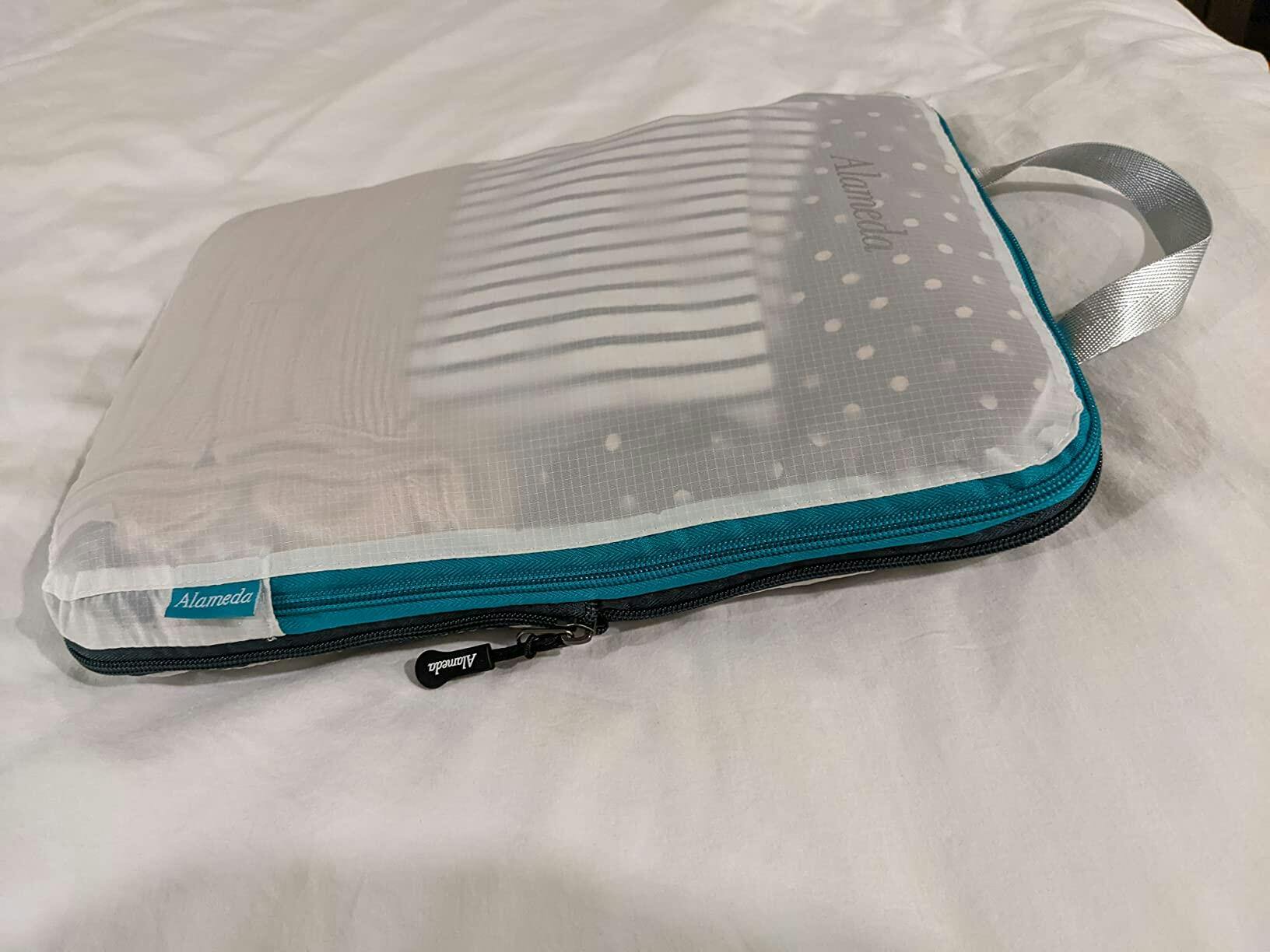 - Space saver. Double zippers of the compression packing cube works perfectly in compressing clothes to help save space in your carry-on luggage or travel backpack. Great travel gear to minimize your package size. Quick grab handle zipper for easy access to pulling out packed cubes from suitcase or backpack.